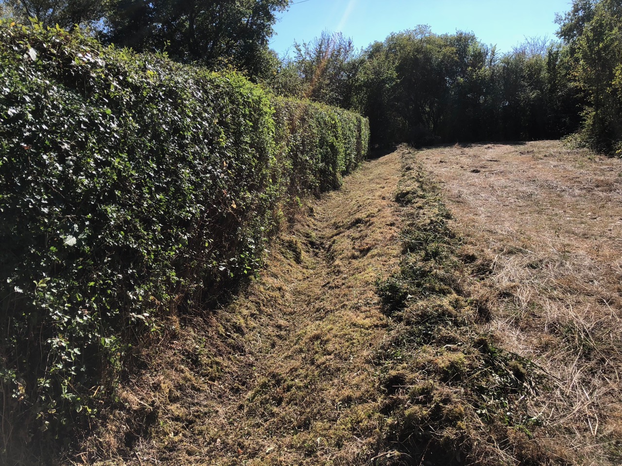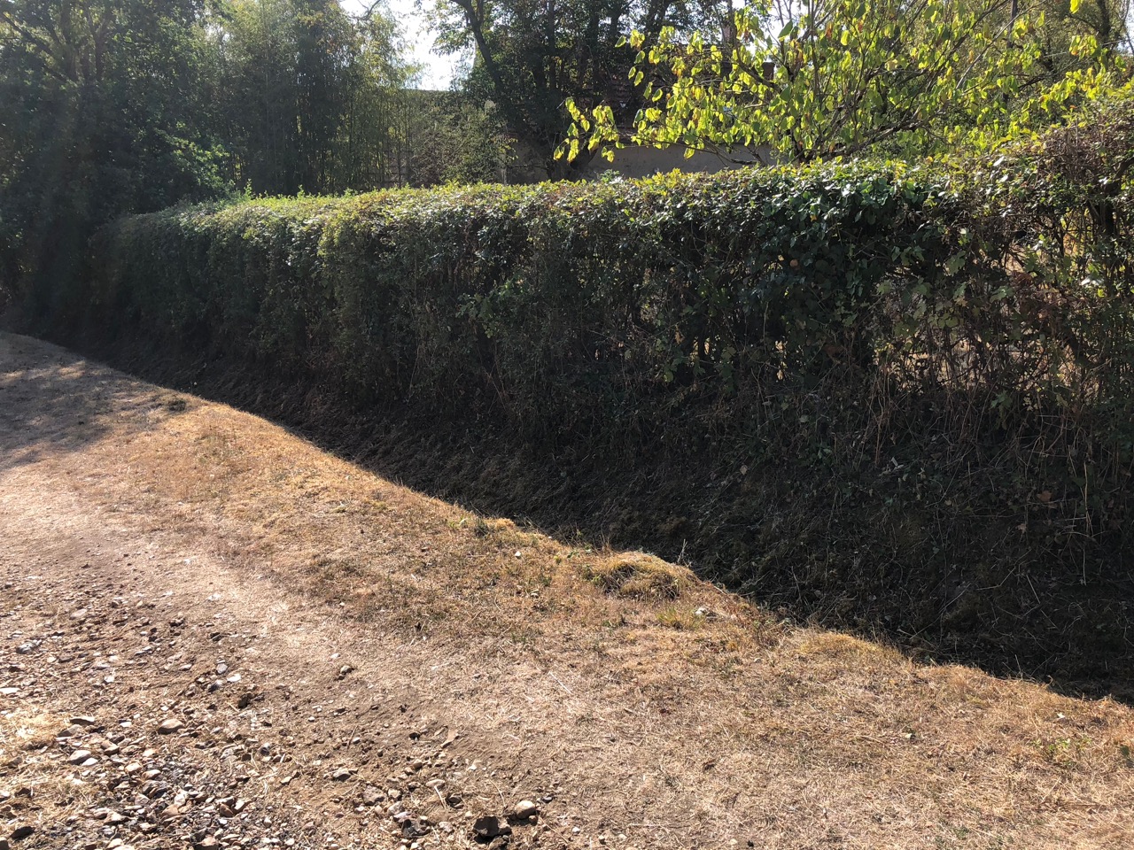 De greppel en haag aan de andere zijde van het pad heb ik ook gedaan. Eigenlijk wordt dit deel ook jaarlijks door de cantonnier gedaan. Iemand die ingehuurd wordt om langs de openbare wegen de hagen te snoeien en greppels te maaien. Maar ik wilde het een keer zelf doen om te weten wat er allemaal groeide.