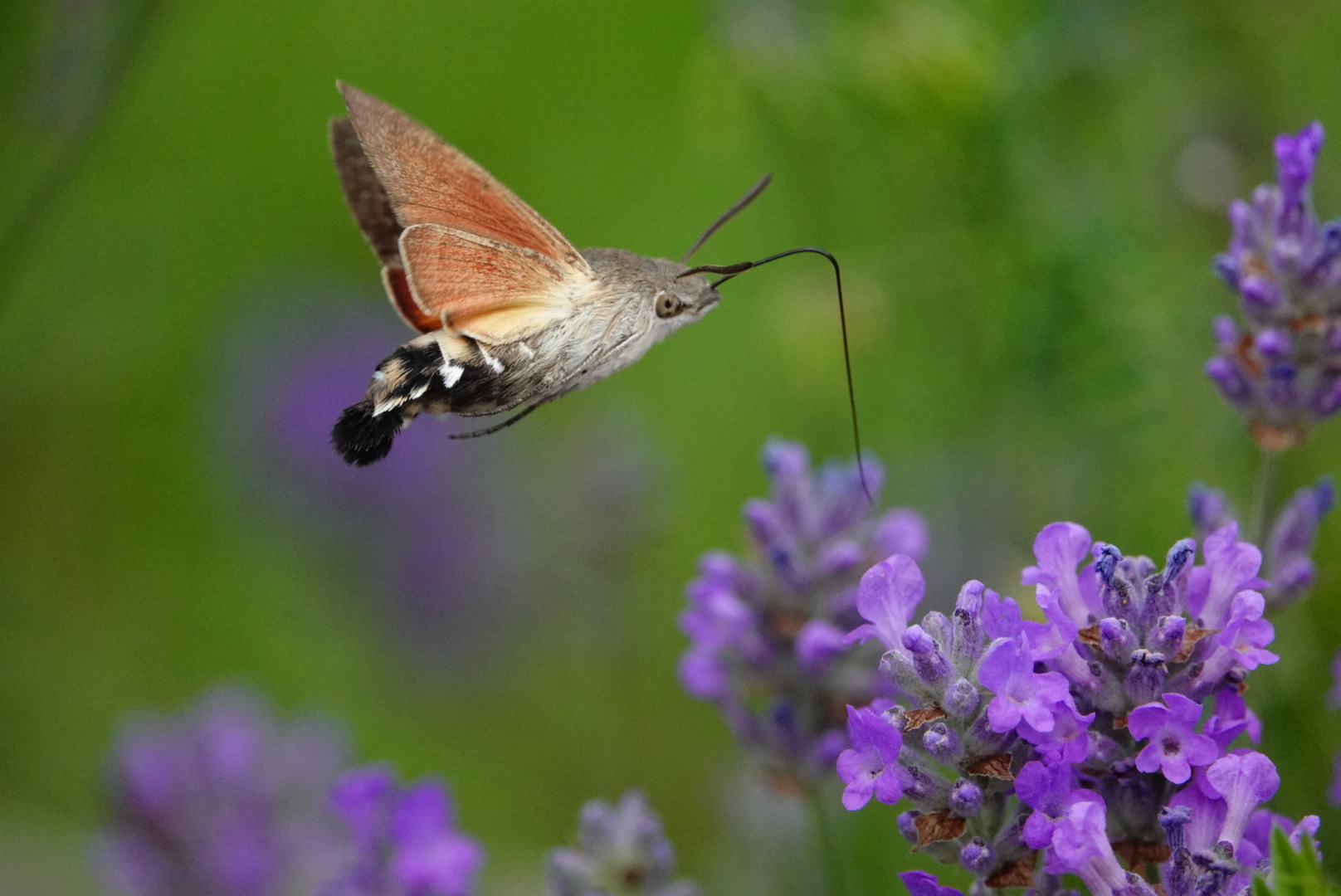 Steeds meer vogels dienen zich aan, de Tjiftjaf met zijn eentonig deuntje, de roep van Buizerd, Groene en Grote Bonte Specht. Een Grauwe Klauwier zingt hoog in de boom en echt honderd en meer vlinders, vooral Dambordjes en Bruine Zandoogjes dartelen over de bloeiende lavendel.